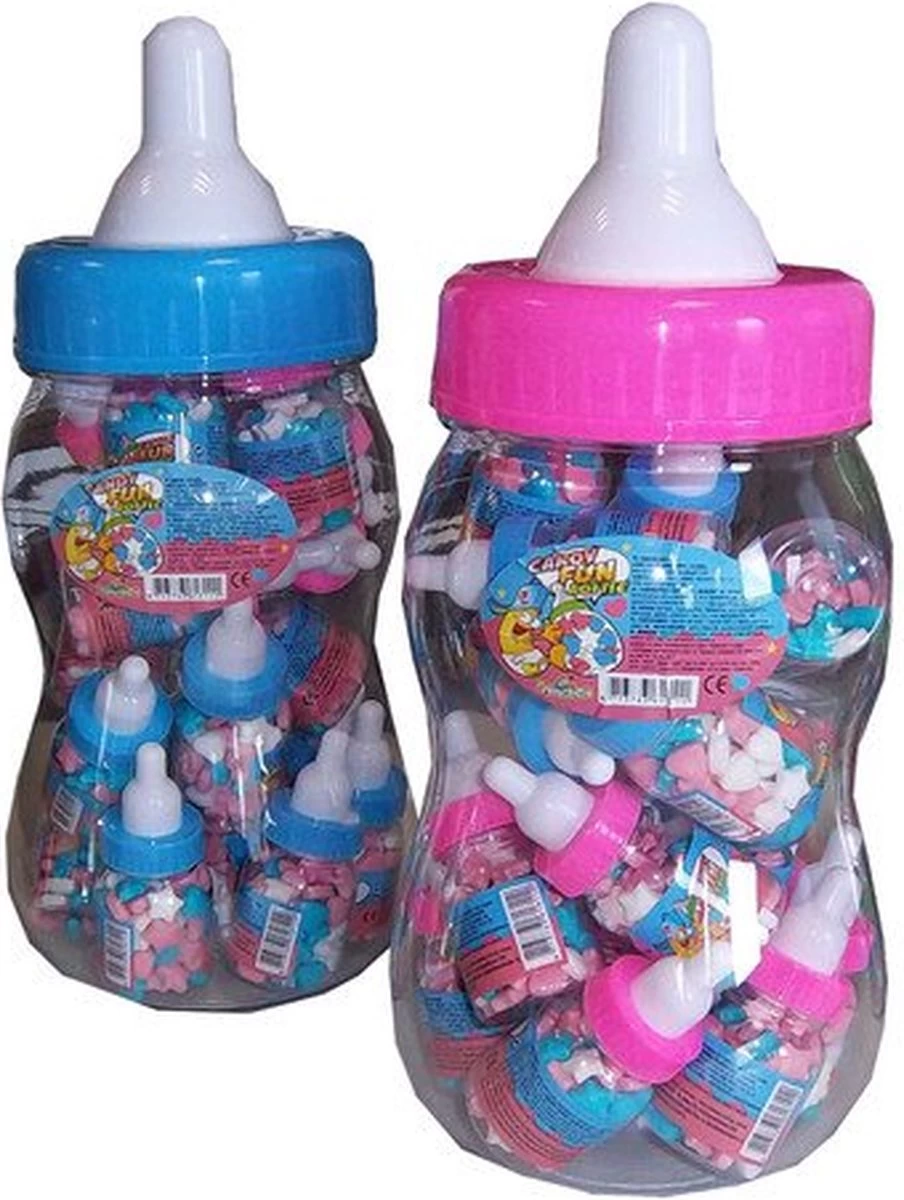 Candy Fun Bottle Feeders – Grote Babyfles Gevuld Met 20 Kleine Baby Flesjes – Blauw – Geboorte Versiering Jongen – Cadeau – Snoep – Traktatie – Spaarpot