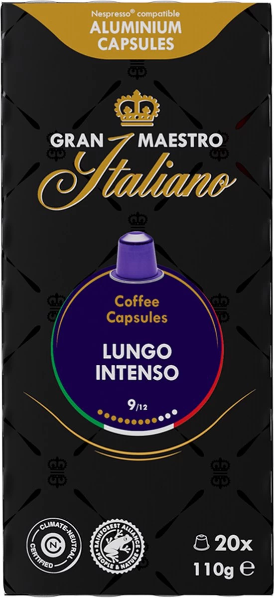 Gran Maestro Italiano Lungo Intenso: Intense smaak in een klein capsule. Geschikt voor Nespresso® zetsystemen.
