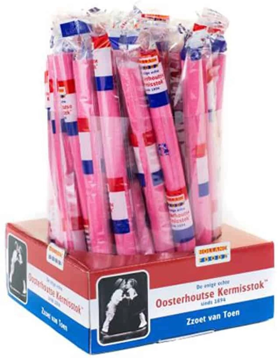Ouderwetse Zuurstok. Productinformatie: plm 20 cm lang x 1,7 cm doorsnede. gewicht gemiddeld 45 gram per stuk