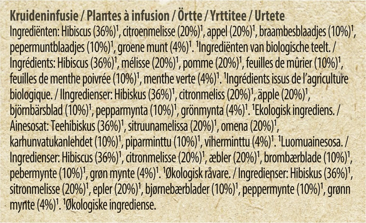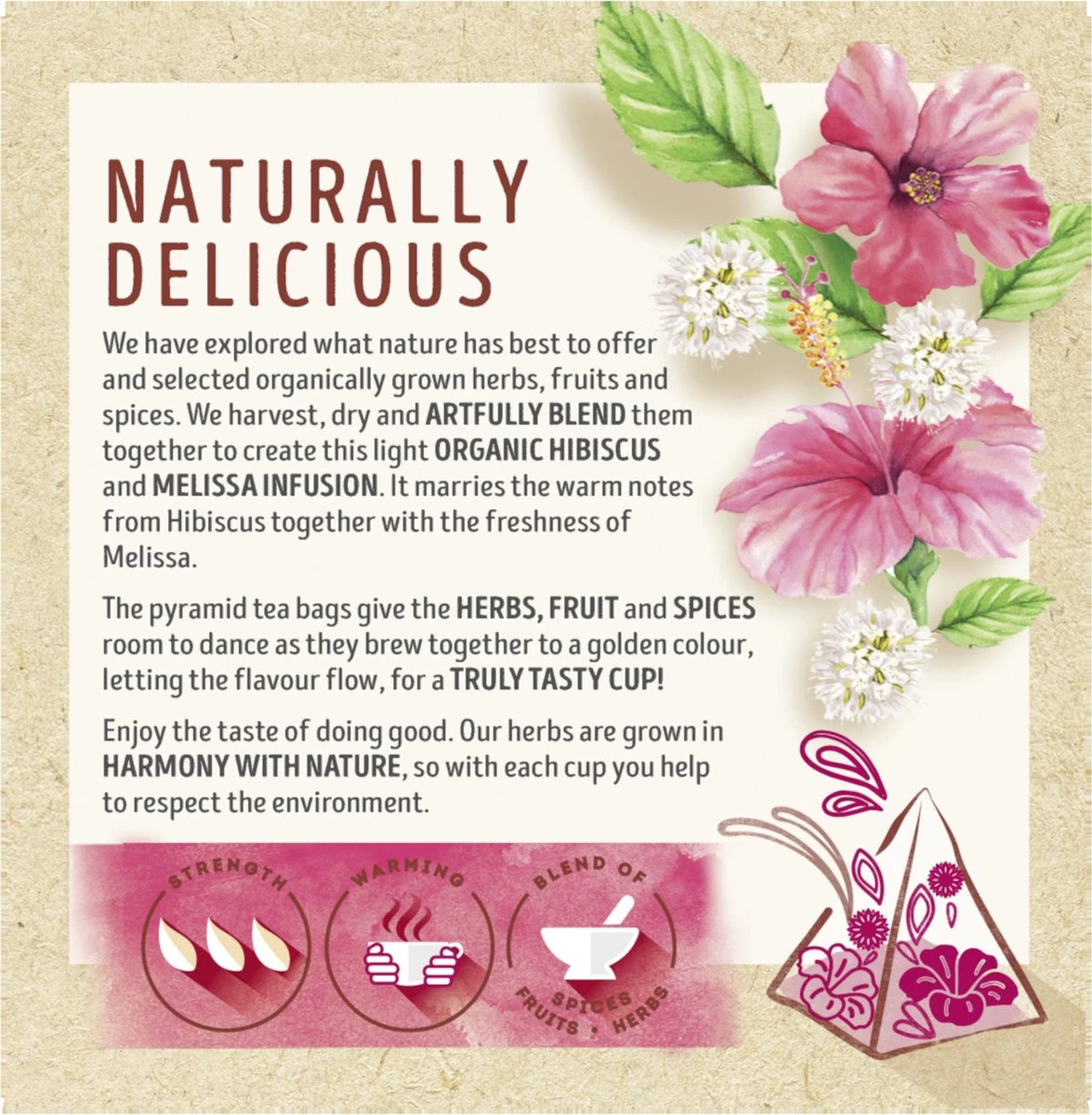 - Een biologische kruidenthee met de smaak van hibiscus en melisse