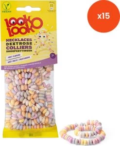 De Look-O-Look snoepkettingen zijn de ideale traktatie voor op een kinderfeestje. Het is niet enkel snoep, maar ook een sieraad. Daarbovenop, is de snoepdelicatesse volledig veganistisch. Dit pakket bevat 15 snoepzakken van elk 155g.