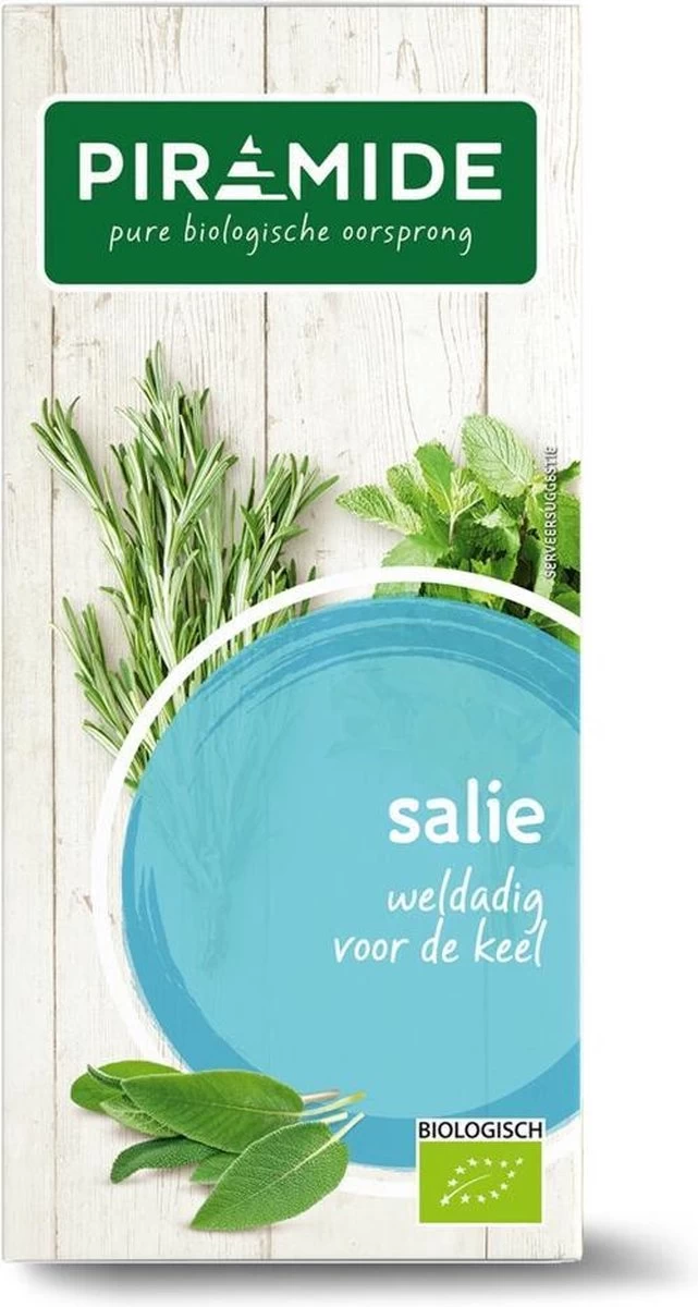 De biologische kruidenthee met Salie van Piramide is van biologische oorsprong is weldadig voor de keel