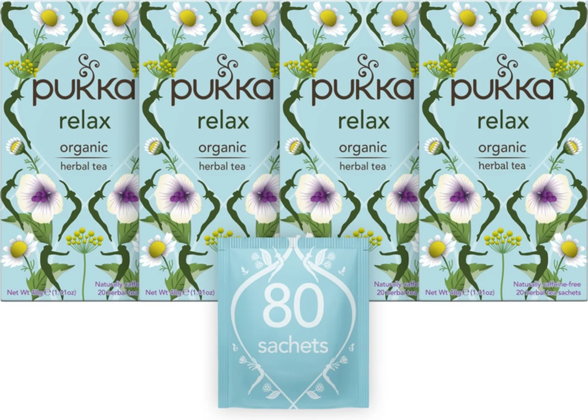 Pukka Relax is een blend met venkelzaad, kamillebloem en gember. Gemaakt van 100% biologische ingrediënten die duurzaam verbouwd zijn. Breng deze heerlijke kruiden tot leven door ze tot 15 minuten in vers gekookt water te laten trekken. Een doosje bevat 20 individueel verpakte theezakjes die volledig biologisch afbreekbaar zijn.