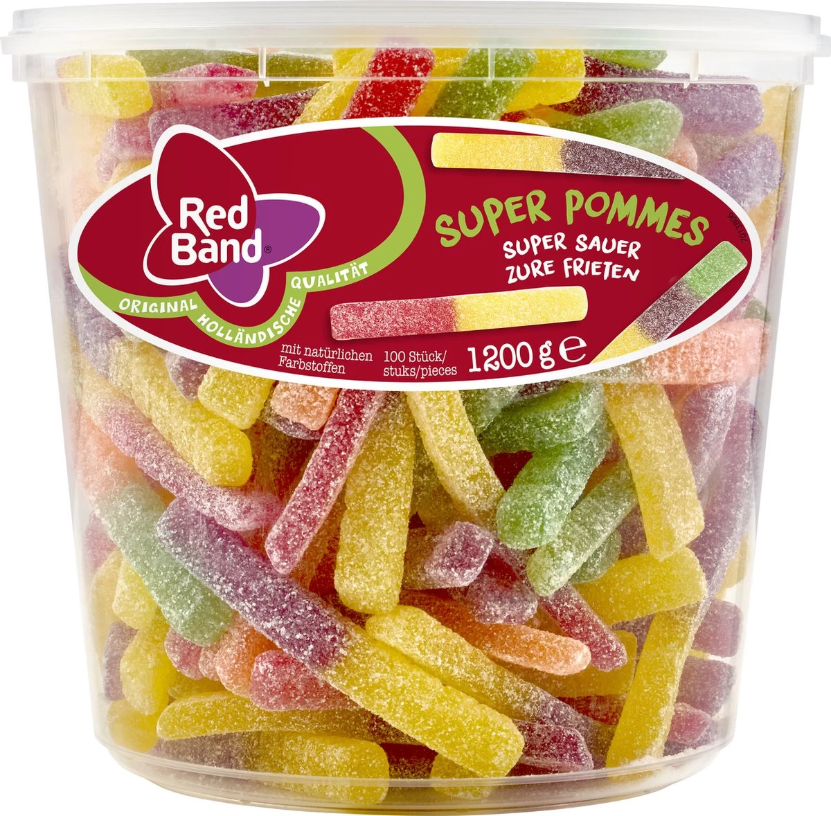 Red Band Zure Frietjes zijn zure winegums met een fruitsmaak.