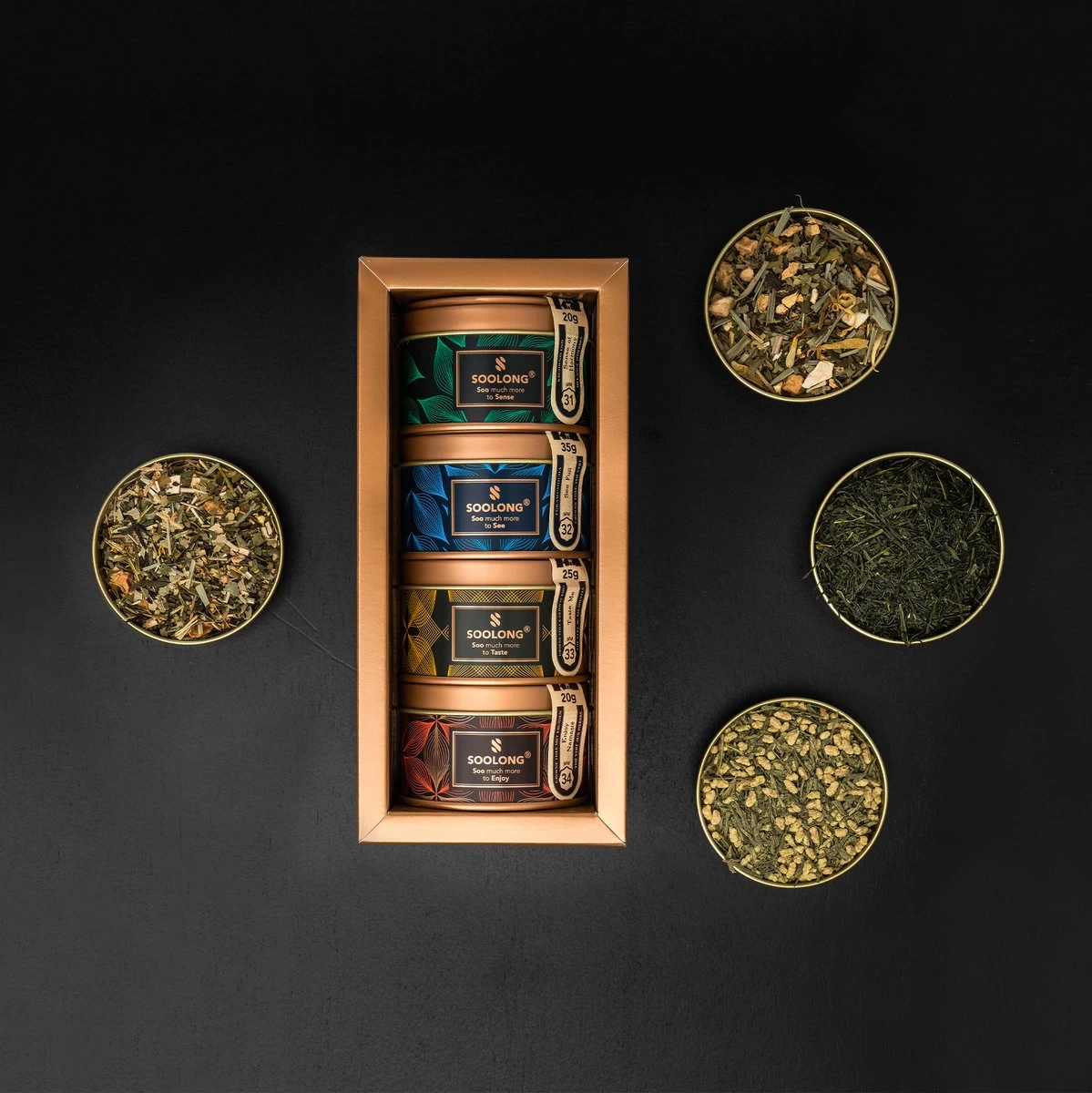 Een exclusief geschenk van vier losse theeën in prachtige blikken.