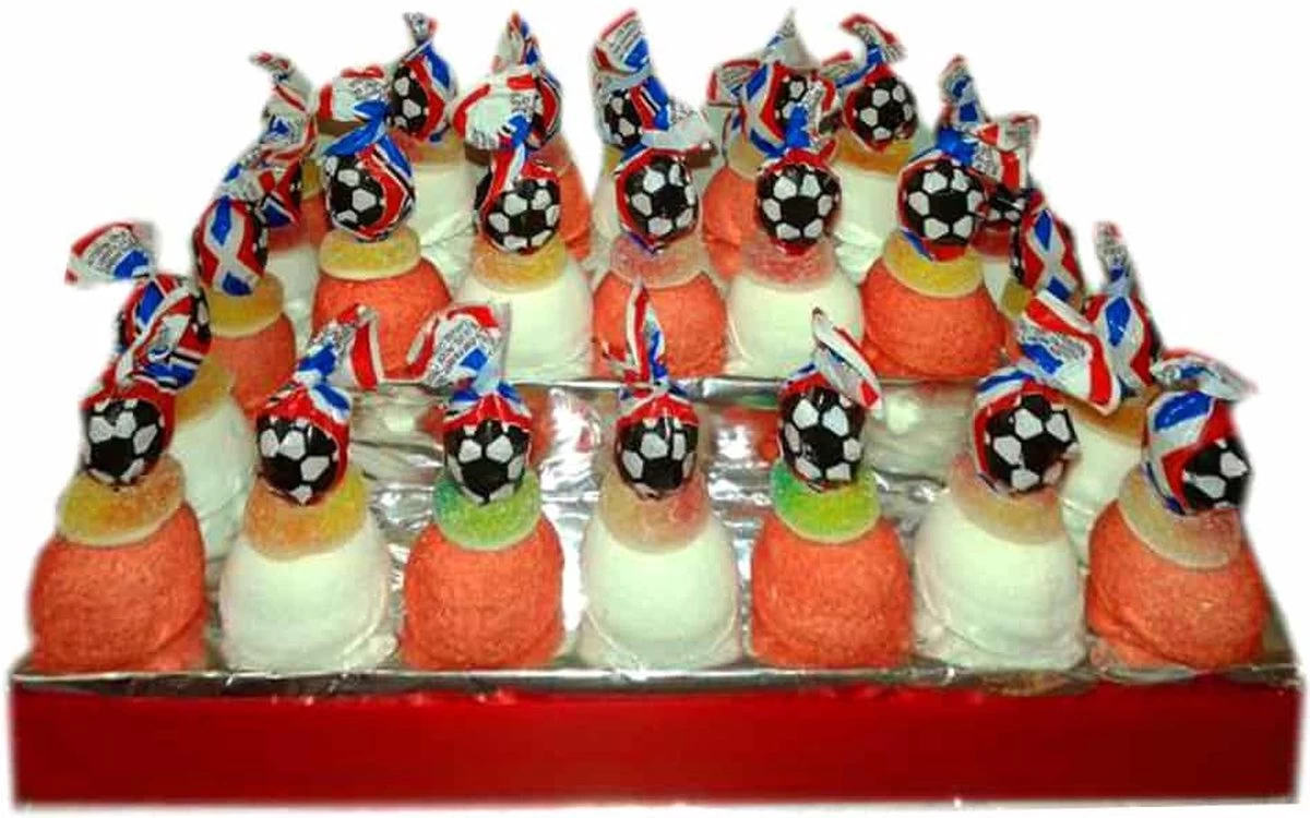 Per traktatie: 1 spek (rood of wit), 1 fruitgum of dropring, 1 voetballollie