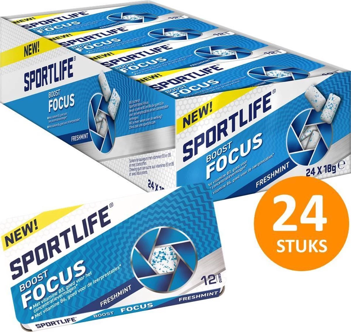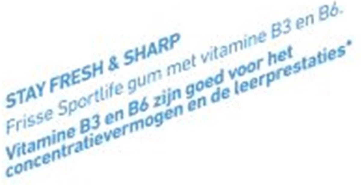Focus nodig tijdens het werken, studeren of gamen? Aan deze frisse en suikervrije Sportlife kauwgom zijn vitamine B3 en B6 toegevoegd. Vitamine B3 en B6 zijn goed voor het concentratievermogen en de leerprestaties. Stay fresh and sharp!