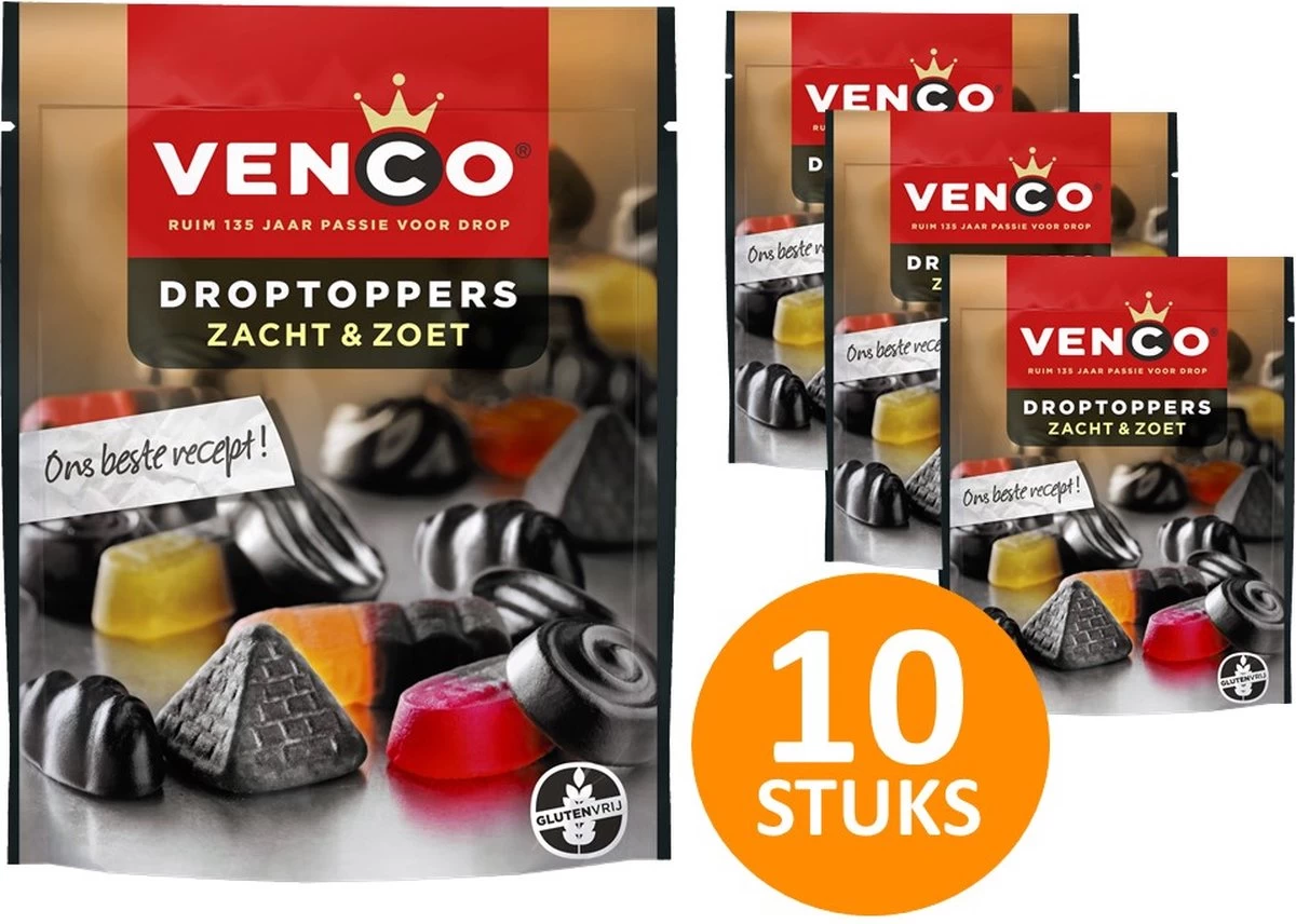 Als je van zacht en zoet houdt, zijn deze lekkere droptoppers jouw keuze: een heerlijke zachte dropmix met Droptoefjes, Piramides en Dropfruit Duo’s. Door hun karakteristieke smaken vormen ze een topselectie als je van zoete drop houdt!