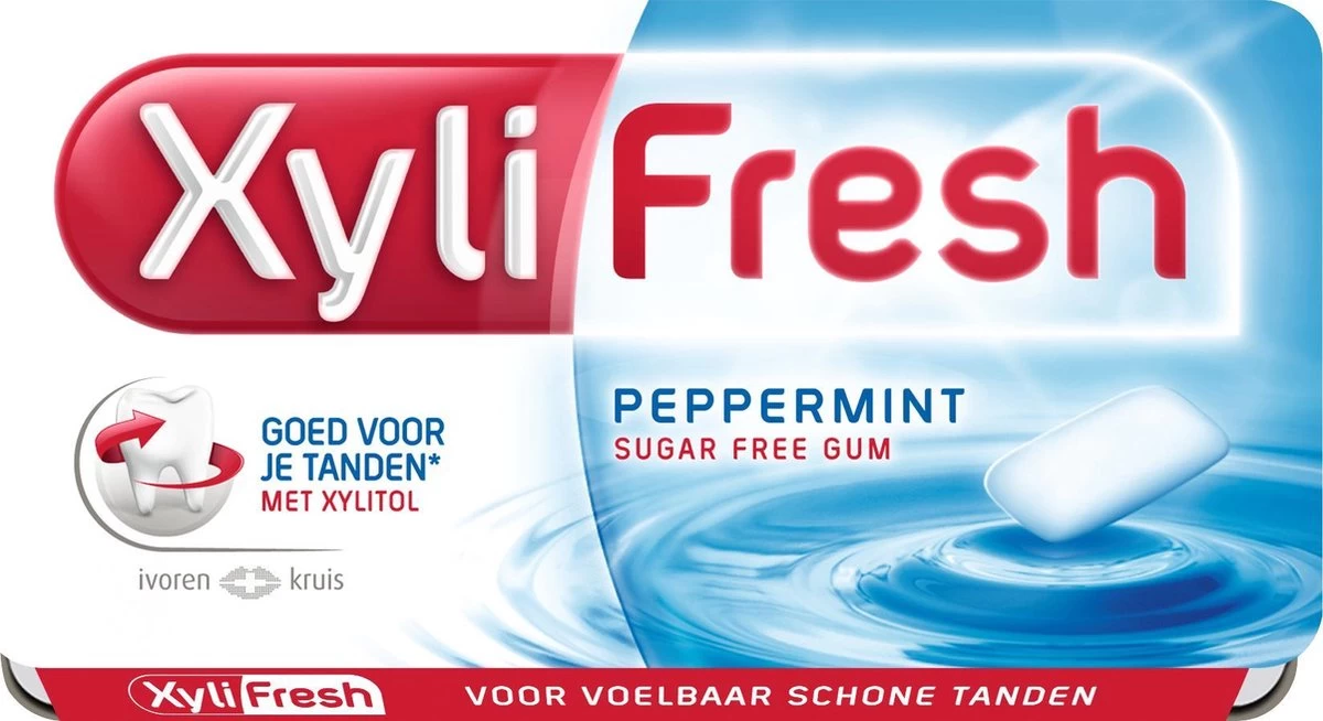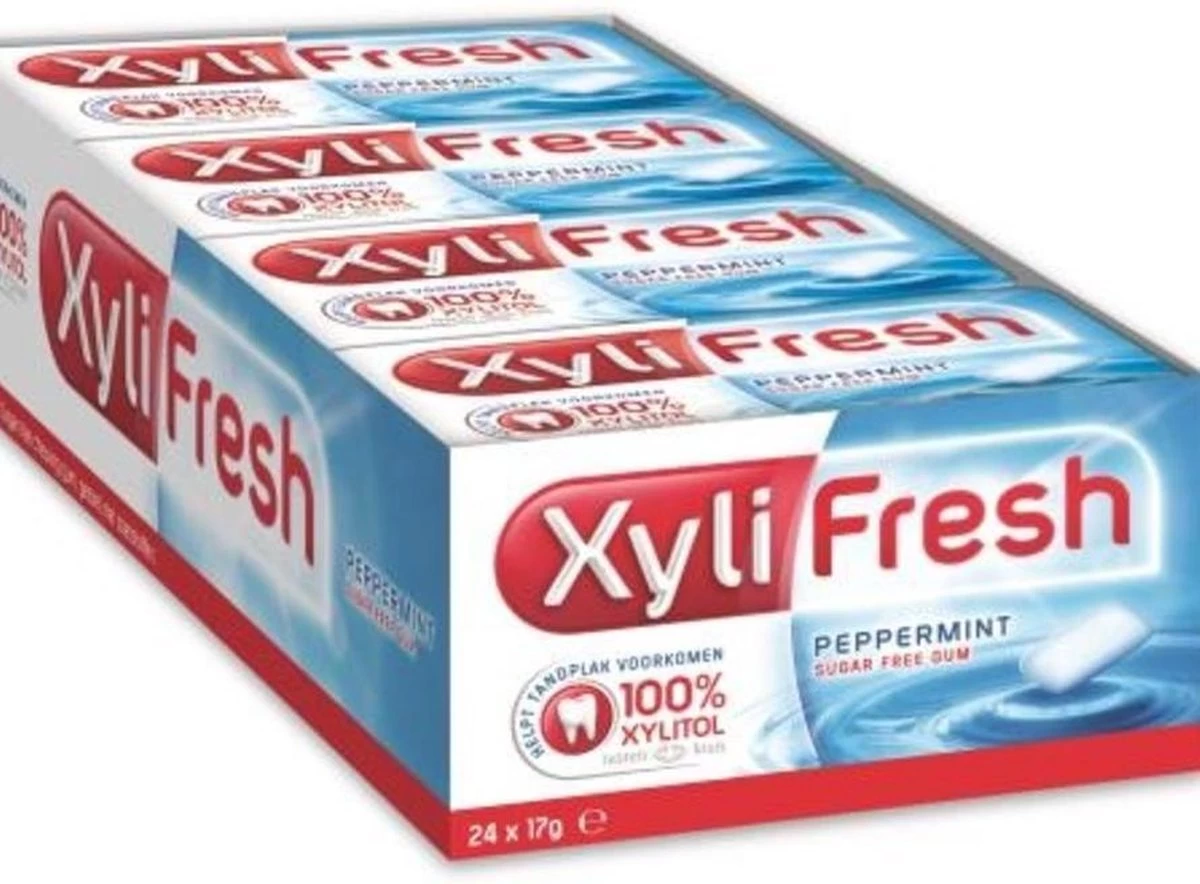 Xylifresh peppermint, een suikervrije kauwgom met een frisse pepermuntsmaak en Xylitol. Xylifresh kauwgom met xylitol draagt bij aan de neutralisatie van plakzuren. Tandplak is een risicofactor bij het ontstaan van gaatjes. Verpakt in een doos met 24 meeneemverpakkingen, ideaal voor onderweg, in je broekzak of in je tas.